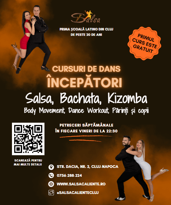 - Salsa & Bachata | Începători: Înveți mișcările de bază și ritmurile energice ale Salsa și Bachata, ideale pentru cei care pășesc pentru prima dată pe ringul de dans.